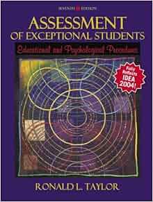 Assessment of Exceptional Students: Educational and ... From the Back Cover. Assessment of Exceptional Students, Seventh Edition, offers a practical approach that emphasizes how both informal and formal procedures fit into the overall assessment process.. Highlights of the Seventh Edition: NEW! Coverage of the IDEA (Individuals with Disabilities Education Act) 2004 reauthorization and its implications on assessment. Assessment of Exceptional Students: Educational and ... Description. Heavily revised, the eight edition of Assessment of Exceptional Students is both more current and more practical, while continuing to emphasize how both informal and formal procedures fit into the overall assessment process.. Comprehensive in it's coverage, Assessment of Exceptional Students provides up-to-date coverage of assessment instruments, techniques, and procedures that ... Taylor, Assessment of Exceptional Students: Educational ... Assessment of Exceptional Students, Seventh Edition, offers a practical approach that emphasizes how both informal and formal procedures fit into the overall assessment process. Features Provides up-to-date coverage of assessment instruments, techniques, and procedures that are used with special education students.